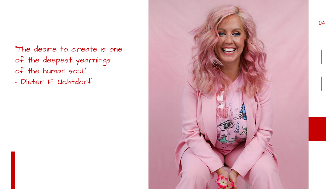 As I learned more about Tiffany I felt seen as a Creative, she wasn’t afraid to wear stripes and poke dots, she really stepped into her innovative soul, and if the mystical unicorn was a human, it would be colourful and effervescent Tiffany Pratt.